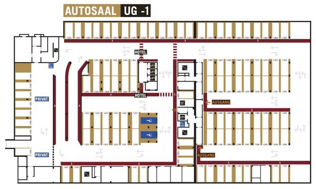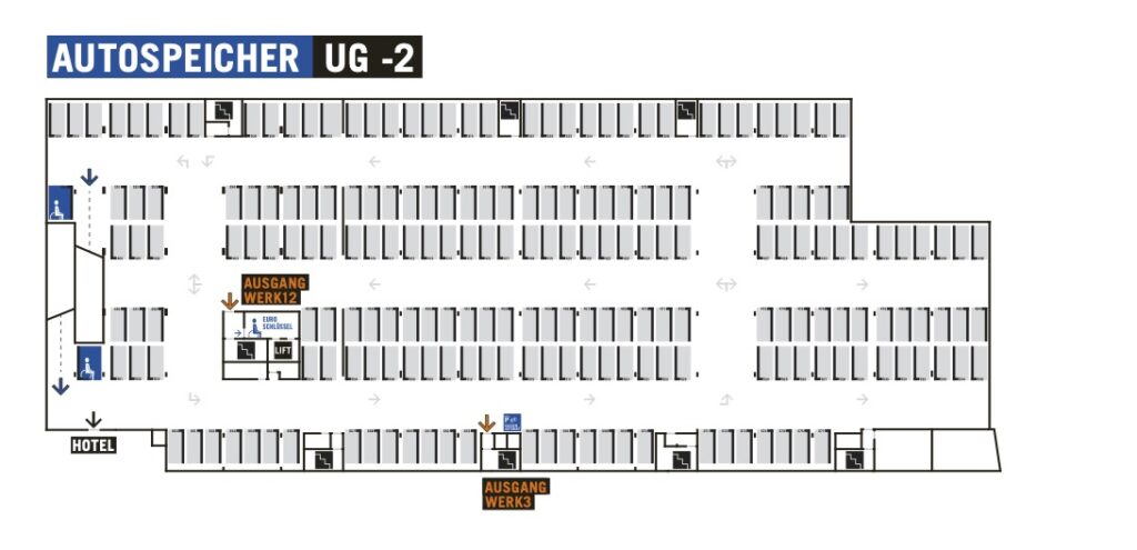 Du hast einen Behindertenausweis mit Kennzeichnung „aG” oder einen blauen Parkausweis? Dann stehen Dir im Autospeicher und Autosaal ausgewiesene Stellplätze zur Verfügung.