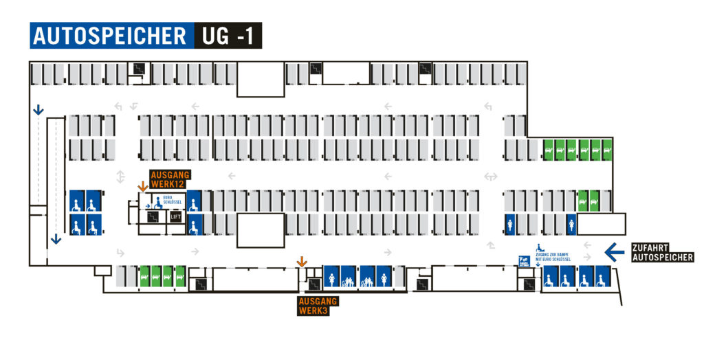 Du hast einen Behindertenausweis mit Kennzeichnung „aG” oder einen blauen Parkausweis? Dann stehen Dir im Autospeicher und Autosaal ausgewiesene Stellplätze zur Verfügung.